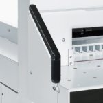 Further features include the programmable EJECT function – for pushing out the paper and a self-diagnostic system with error indication on display. Blade made of high quality HSS steel. Swing cut for high cutting precision. Die-cast aluminium blade carrier and adjustable blade guides. Aluminium clamp bar. Adjustable blade depth. Sturdy cast iron machine frame. Movable on castors.
